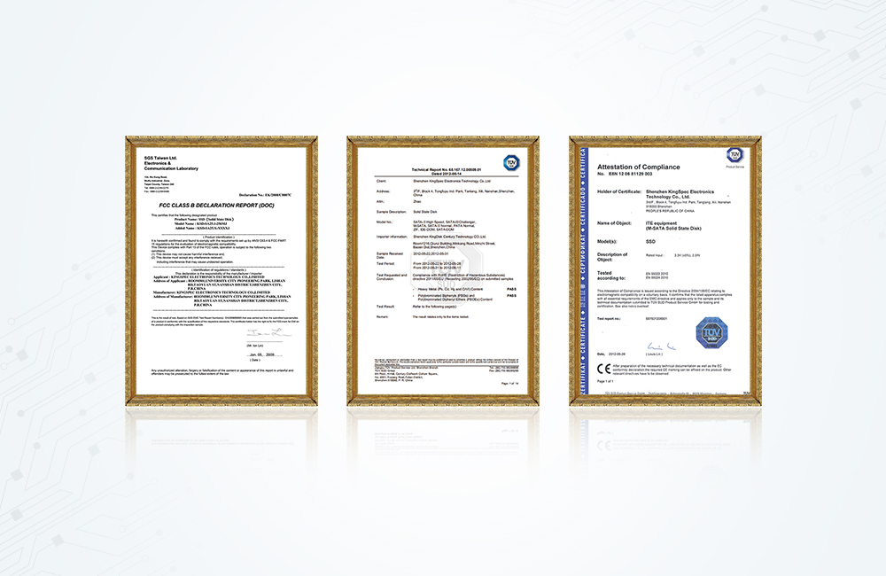拓寬產(chǎn)品線PCIe、PATA、DOM、金勝維SATA系列產(chǎn)品通過CE、FCC、RoHS等權(quán)威認證